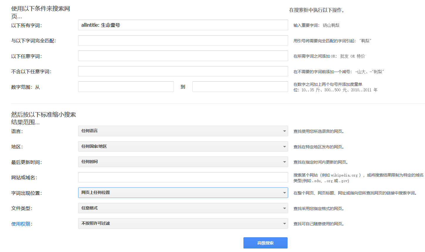 yy intitle:xx 含义:在包含xx的标题中搜索内容yy。只适用于谷歌。