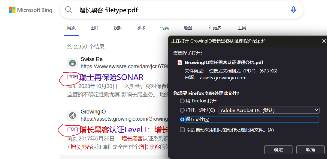 xx filetype:pdf 含义:搜索与xx相关的pdf文件。