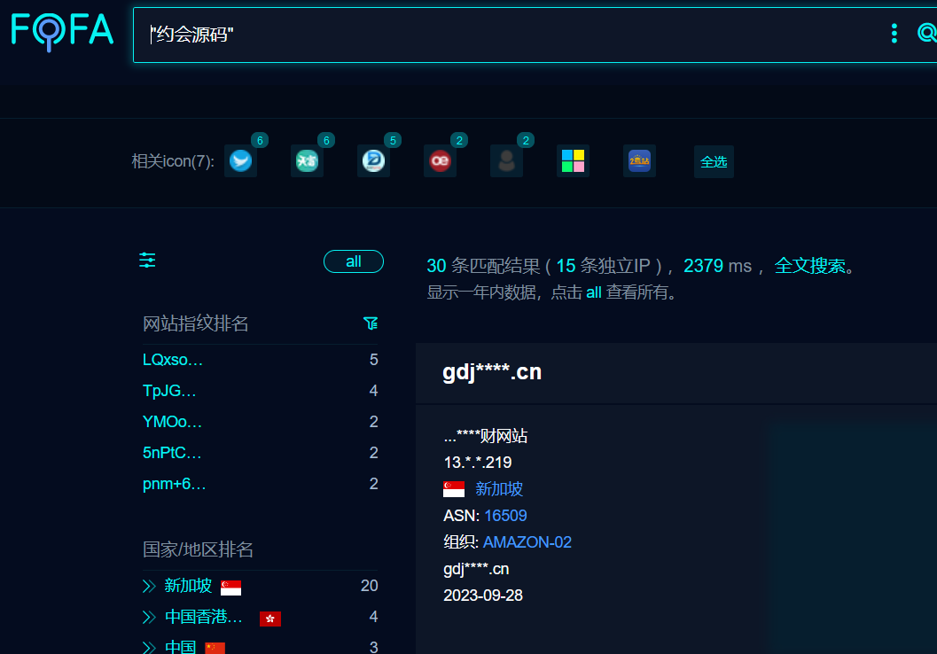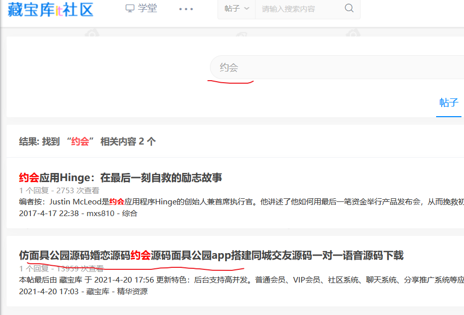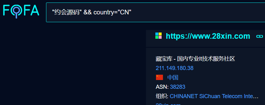 省略下前面重复的信息打点,现在老师获取到了该app的服务器信息有win + php + nginx + mysql 。现在老师想获取其源码,老师在bing / google / fofa上搜关键词,发现一家源码交易网并进去搜”约会“keyword,成功找到该app的源码(其实老师还在其他网站也搜到了该源码):